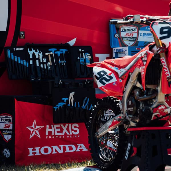 După ce am proiectat trusa de scule pentru Pro Kit, am stat de vorbă cu mecanicii echipei și am selectat cu atenție un set de scule pe care mecanicii MX exigenți le vor aprecia. Am ales 107 piese de unelte care se potrivesc perfect pentru un set portabil, atelier sau acasă.