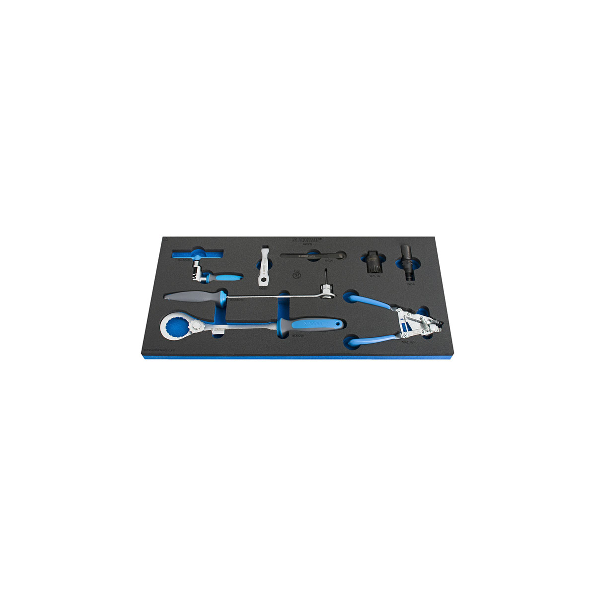 Set is composed out of different bottom bracket, crankset and chain tools. Tools are stored in a high quality SOS foam tray that will fit in any of our 938 or 939 tool chest models.